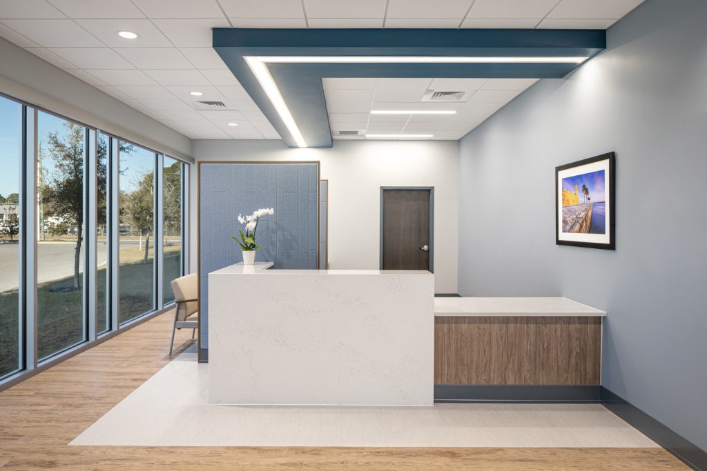 Featuring eight infusion bays, two of which are entirely private and six of which are semi-private, the layout of the bays empowers patients to choose the level of social interaction they desire on a given day. An exam room, consult room, staff break room, waiting area, and technical support spaces fill out the remainder of the suite.